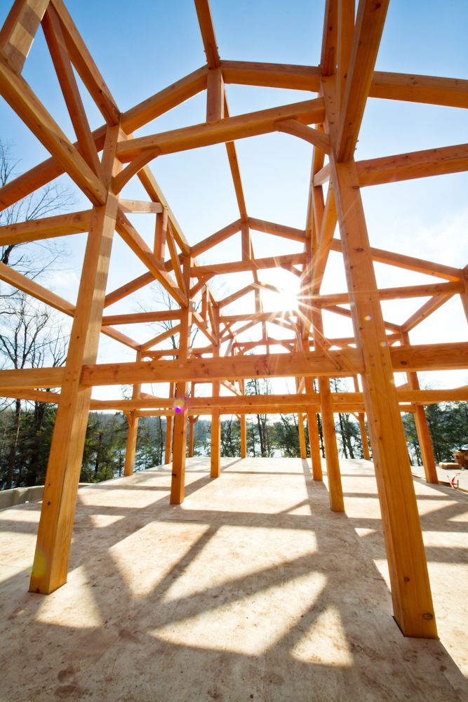 Custom Timber Frames also have a place in the sustainability movement. Locally harvested timber that is used in an raw, non-dried state doesn’t require the embodied energy of kild-dried wood. Large timbers are also reusable as either salvaged timber or may be re-purposed into other building components later in its lifetime. This type of reuse can be very important when deciding what types of materials you use in a new home construction project.