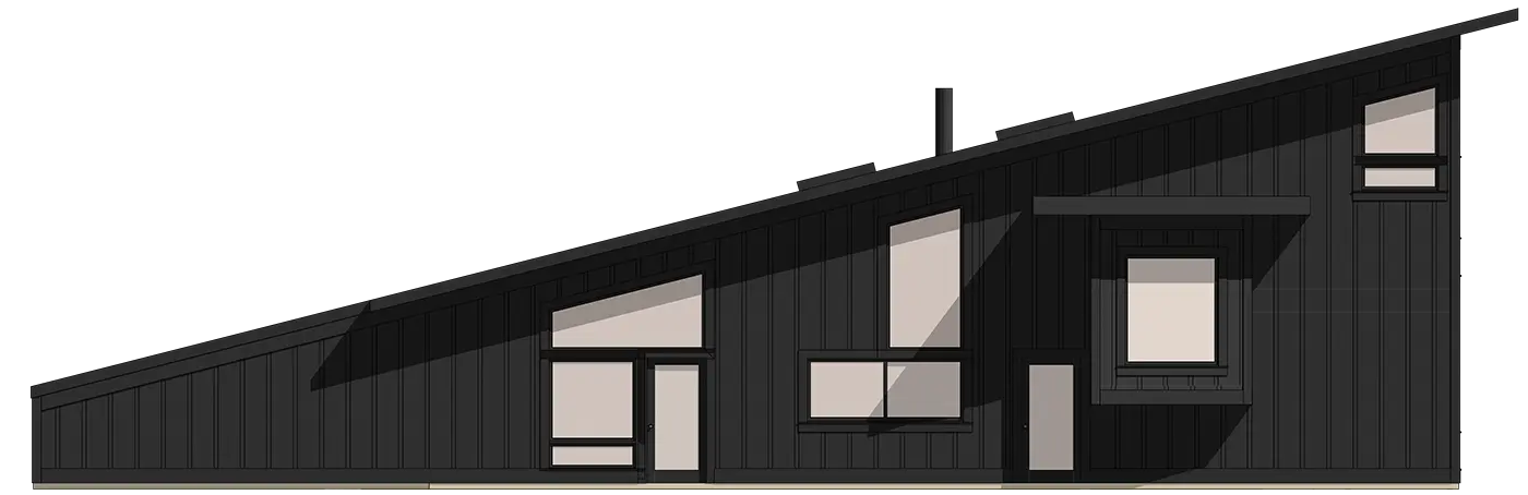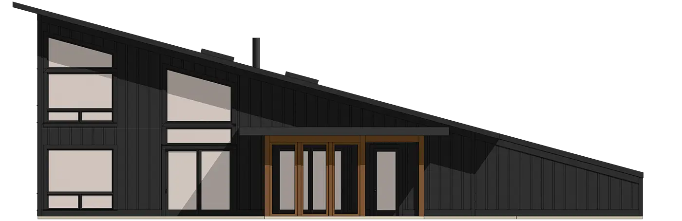 This custom home boasts a modern geometric exterior and floor-to-ceiling windows to allow plenty of light. The generous open floor plan boasts a connected kitchen, lake room, living space, and en suite. The second floor features a large loft with a second en suite open to the main floor below.